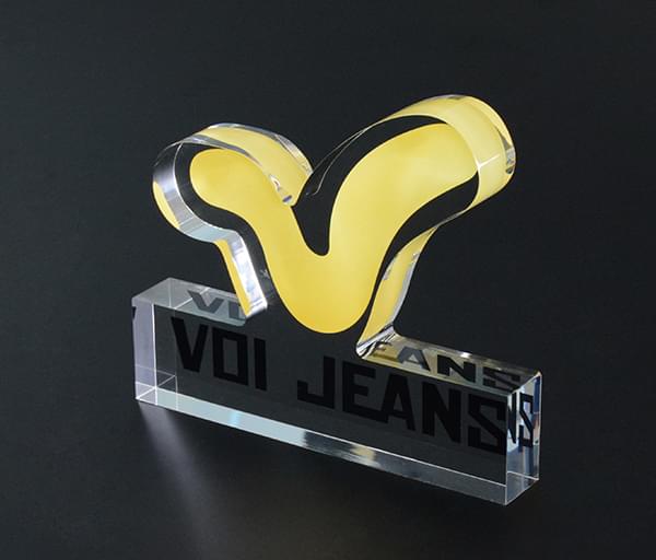 亞克力獎牌,30mm厚透明亞克力,CNC鑼外形,再經雙手細細打磨拋光,絲網印刷黃色與黑色,產品透亮,整體美觀.