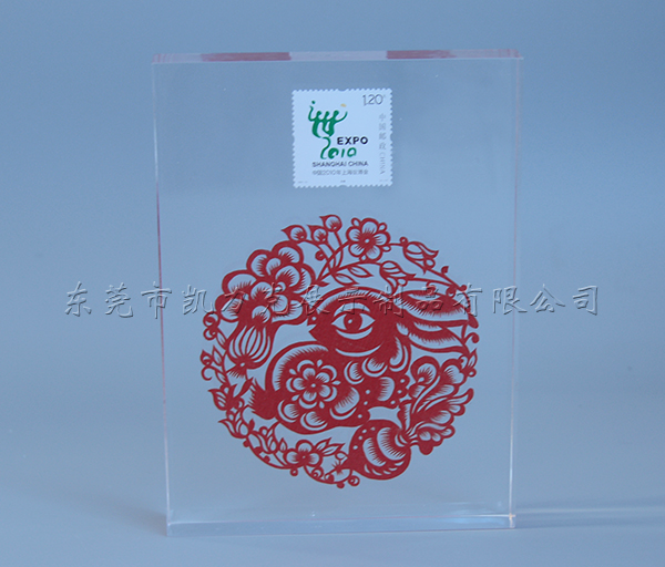 這款亞克力無縫熱壓通過烤箱和使用大功率高壓設備可以將兩片高透亞克力板中間防止了一張郵票和一副圖案無縫壓合在一起,再經過打磨和拋光最后做出這無痕跡、無氣泡、五雜質、晶瑩剔透的成品。