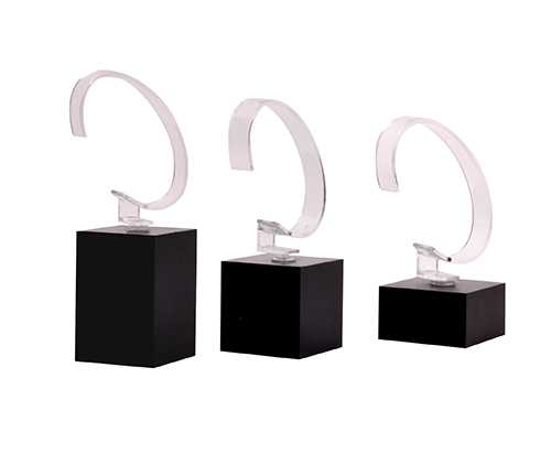 手表展示套裝的配件,手表展座,材質(zhì)為黑色亞克力,表面噴黑色磨砂油,展座上的透明表環(huán)需另購。此產(chǎn)品也可獨(dú)立存在,只需印上手表品牌logo就可。