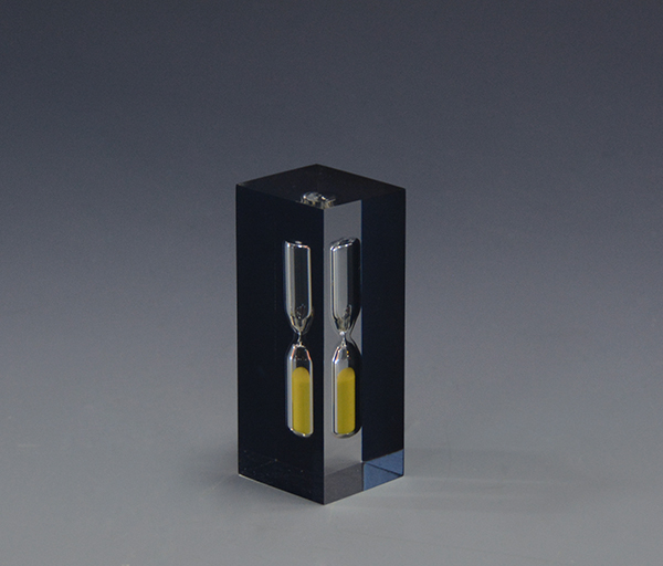 這是一款水晶膠沙漏工藝品,計(jì)時(shí)3分鐘,五面為透明色,正面為客人定制的黑色絲印圖案,這款沙漏可以按照個(gè)人要求定制規(guī)格、計(jì)時(shí)時(shí)間、沙子、絲印圖案等。