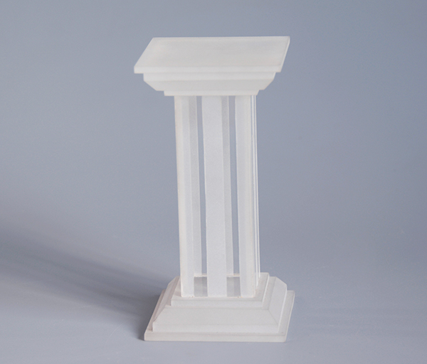 這款亞克力工藝品上下采用透明亞克力板噴砂成磨砂效果然后使用CNC鑼出階梯,中間部分采用透明亞克力片采用噴砂工藝使部分形成磨砂效果然后粘接而成。整個(gè)造型是仿方形羅馬柱,采用亞克力材質(zhì)更顯通透有靈氣,當(dāng)然我們這款柱子的尺寸只有15厘米,如果需要可以定制更大的,但是1米以上就難以實(shí)現(xiàn)了。