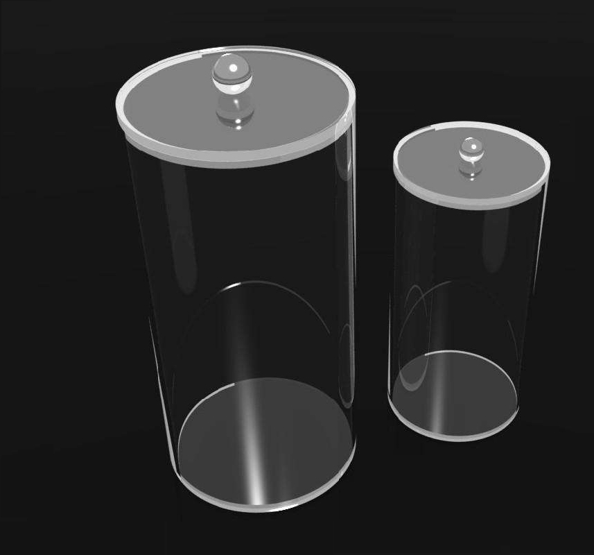 這款亞克力桶是由高透的亞克力管底部一片板粘死,頂部在安裝一個亞克力蓋,整體晶瑩剔透,表面無瑕疵無劃痕,裝在里面的東西可一目了然,