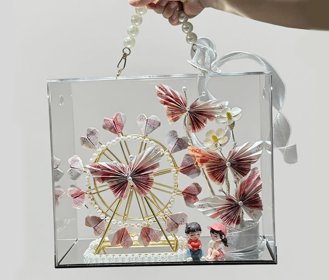 在禮品包裝領(lǐng)域,亞克力手提盒成為了熱門(mén)選擇。其透明的材質(zhì)能夠清晰展示盒內(nèi)禮品,增加禮物的吸引力與神秘感,無(wú)論是用于婚禮伴手禮、商務(wù)禮品還是節(jié)日禮物都十分合適。像在婚禮中,亞克力手提盒搭配精致的喜糖、定制的小飾品等,墊上彩色拉菲草,再系上漂亮的絲帶,在燈光下熠熠生輝,營(yíng)造出浪漫又高級(jí)的氛圍