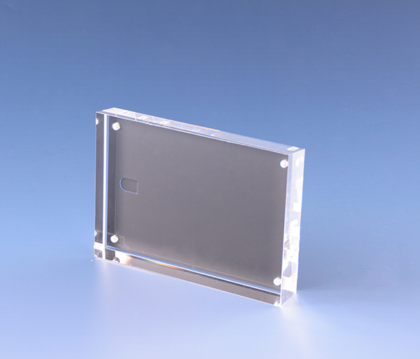 這是一款出口英國的相框,前面為18mm厚的透明亞克力,后面是0.6mm的拉絲鐵皮,亞克力與鐵皮之間由高強(qiáng)度磁鐵連接,中間可方便的放入優(yōu)雅的相片,公司的宣傳畫,方便更換.